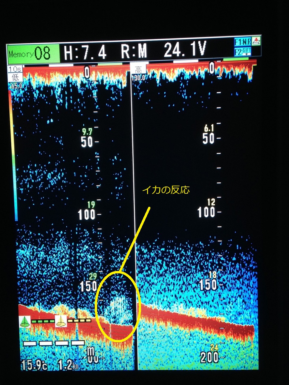 (高周波側の映像は、色々と実験したい&イカも釣らないといけないので、こんな映像でスミマセン・・・)